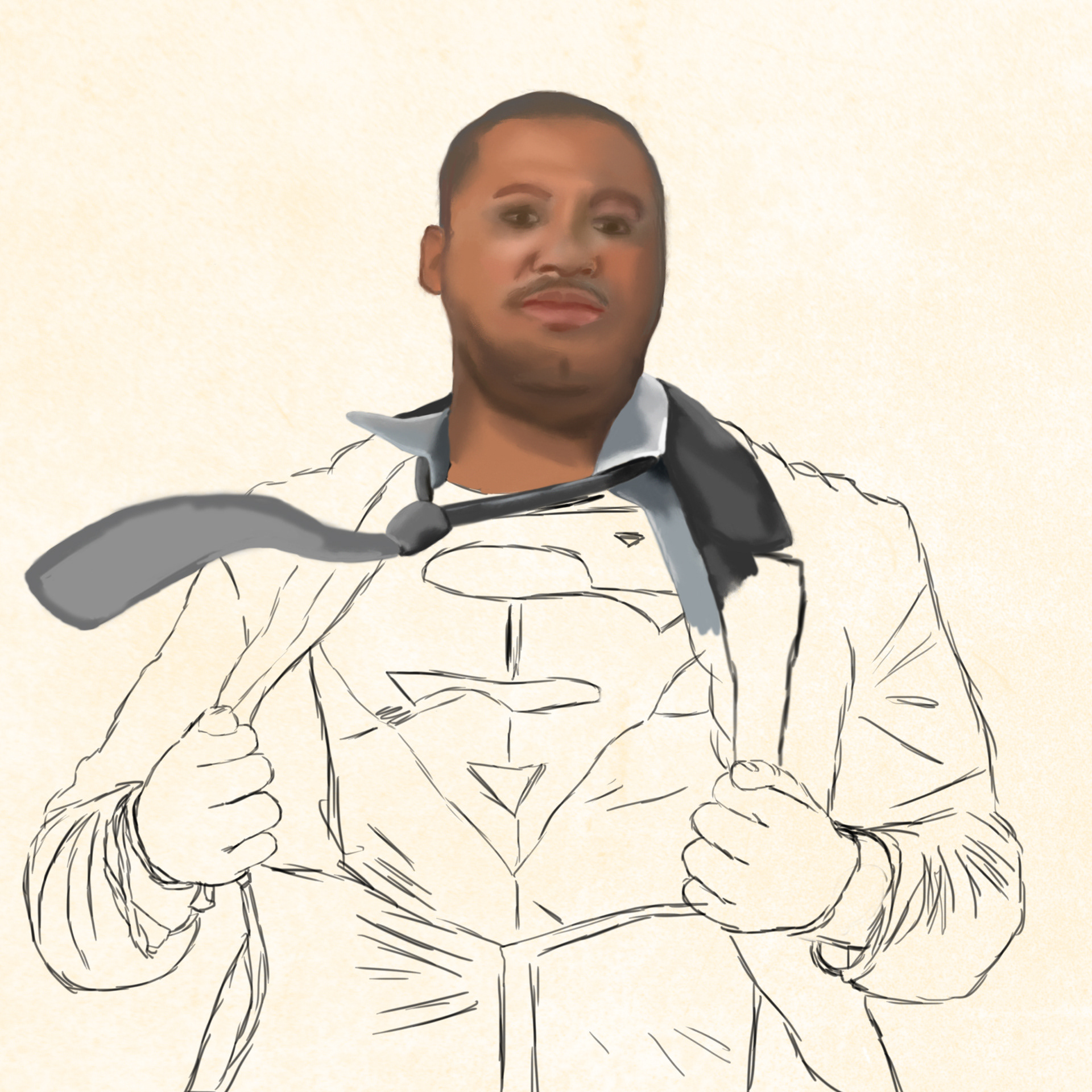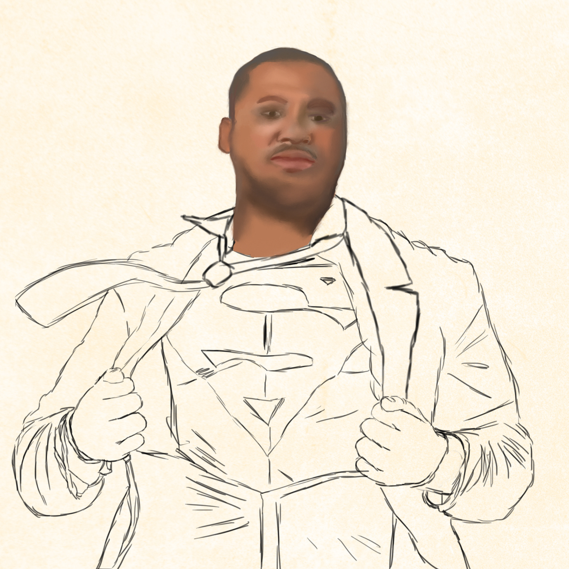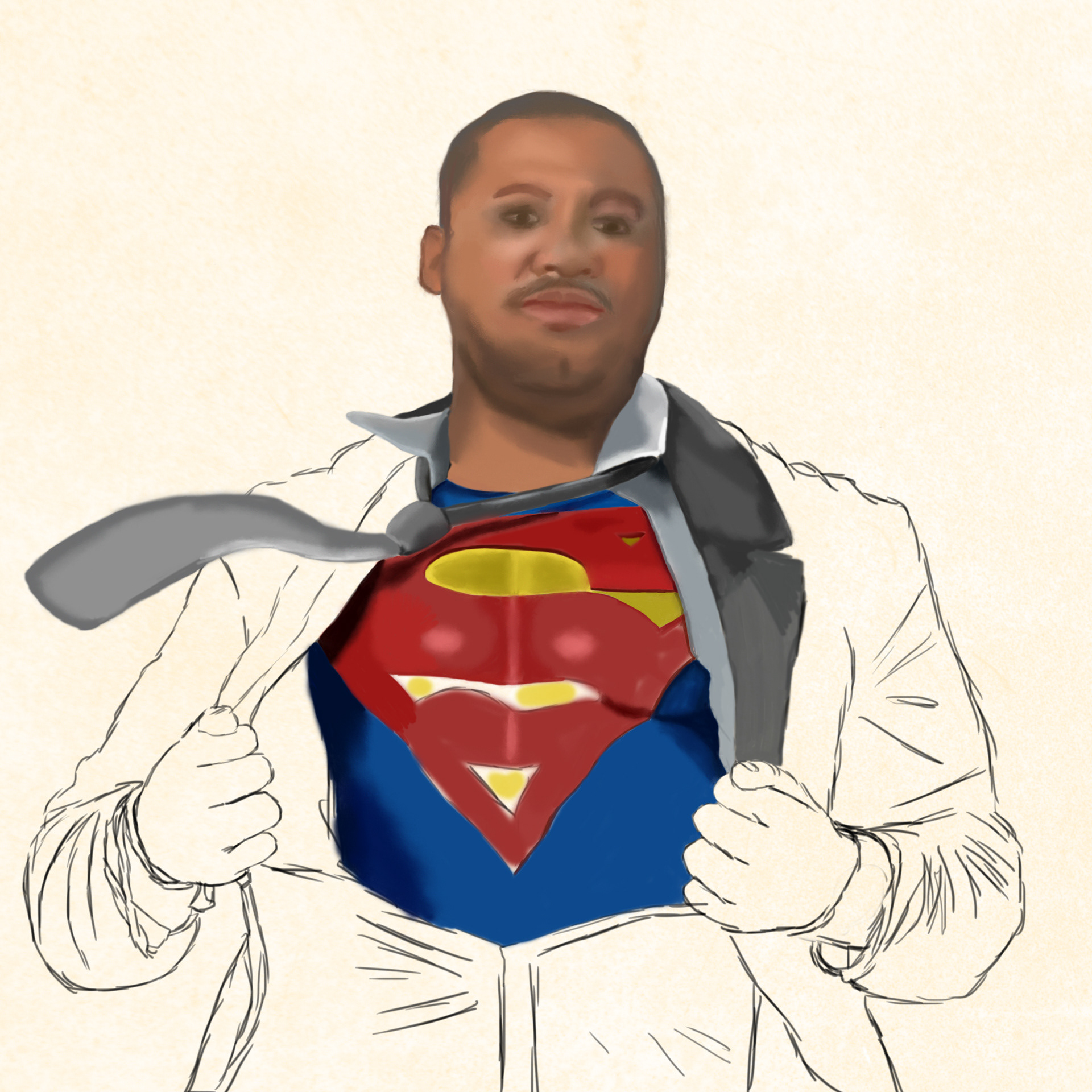 A drawing of a father who was a huge fan of Superman.