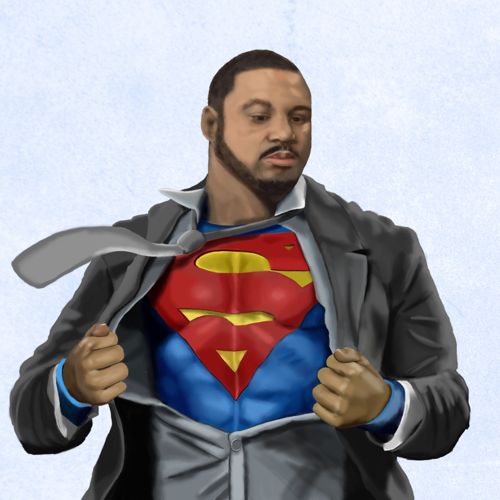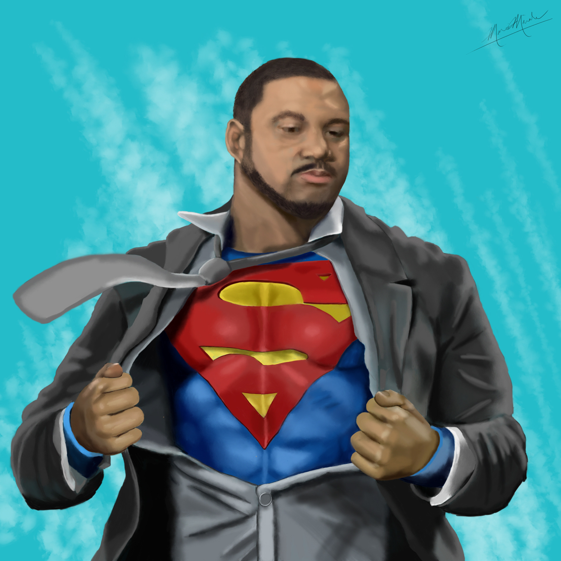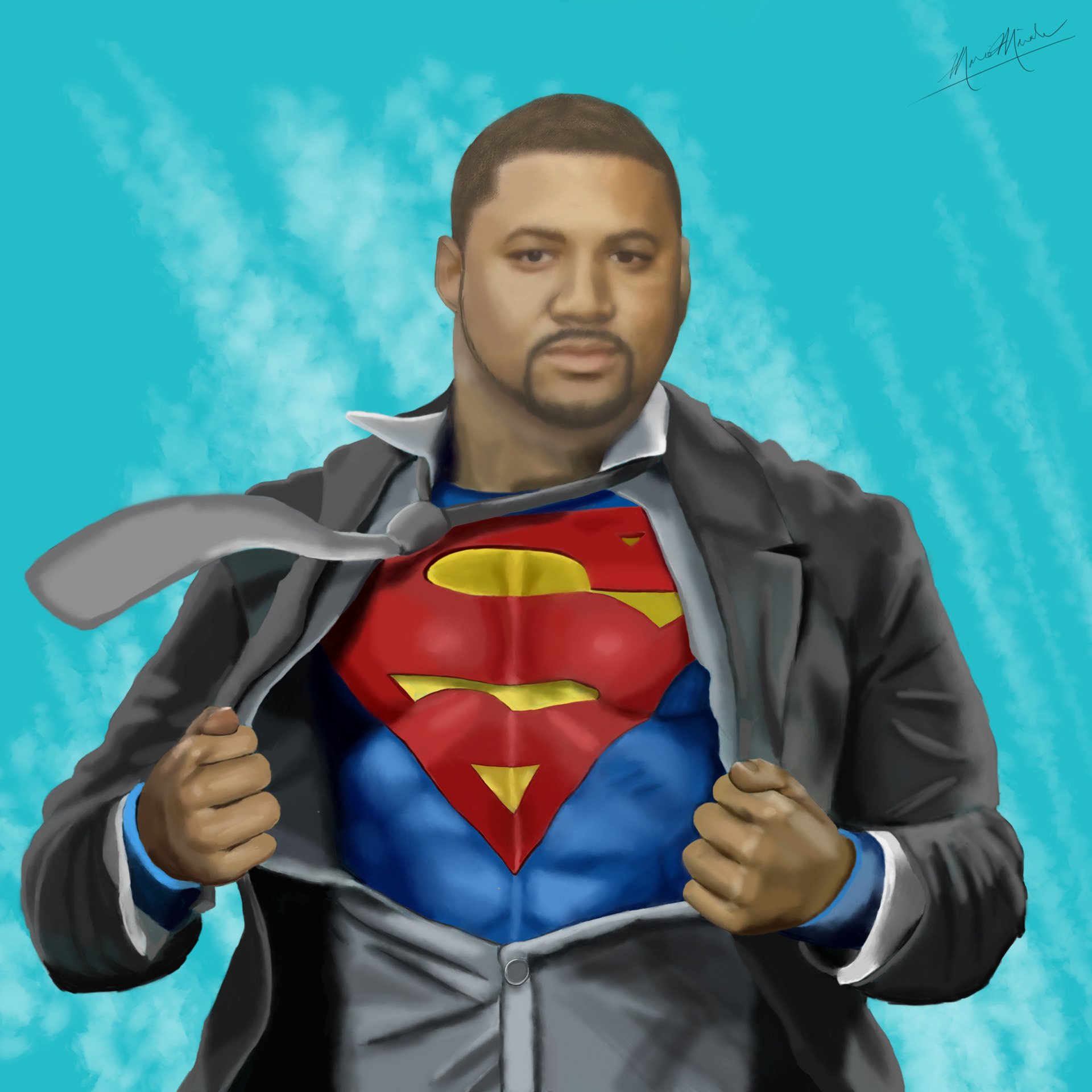 A drawing of a father who was a huge fan of Superman.